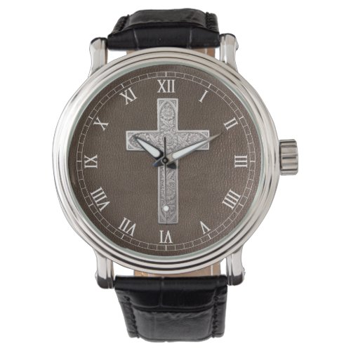 Silver Cross Roman Numeric Face Plate Watch