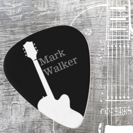 Personalized black and white item. A cool suggestion to self-promote the guitar-player. Your name, or band-name, on back side & initials on front side