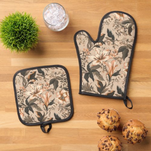 Vintage Floral Pattern Oven Mitt & Pot Holder Set